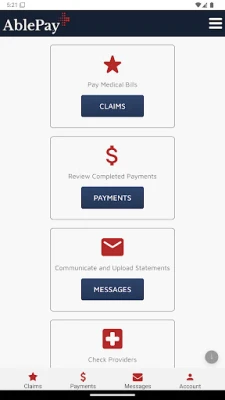 Besides the "claims" tab to manage payments, the portal provides additional features:
