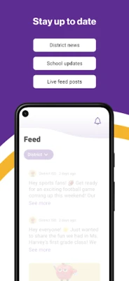 DISTRICT UPDATES In the Live Feed is where you’ll find updates from the administration about what’s going on in the district right now. Whether that’s celebrating a student’s success, or reminding you about an upcoming deadline.