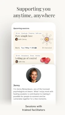 1. Real-time human connection: The app provides a unique blend of working with science-based content, peer-to-peer and facilitator-guided support, and personal development. By joining Aware, you'll become part of a community that helps you connect with yourself, others, and the planet. You'll get real-time social support that is essential for mental wellbeing and building meaningful relationships.