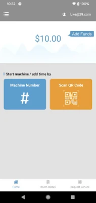 • Scan the QR code of your laundry room (one time process) • Start laundry machines via Bluetooth by scanning QR code on the machine • Check your card/account balance, and add value to your account for laundry.