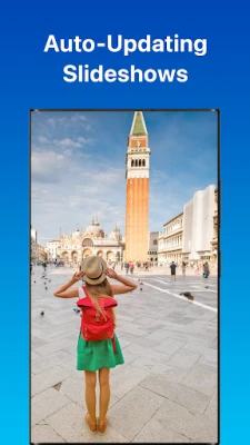 Use your device as a digital picture frame. Slideshows loop and can play videos too! Choose from a dozen animations. Play your slideshow on a single album or show all of your pictures. Turn on auto refresh so your slideshow stays current with latest slides.