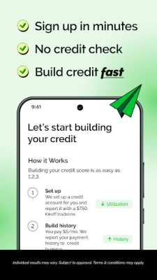 Kikoff helps you build credit by establishing a payment history and maintaining a low utilization rate, all with no unexpected fees or interest.