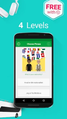 Fun Easy Learn has developed many applications to help people around the world learn foreign languages for free. Fun Easy Learn applications improve your Danish skills: speaking, listening and grammar. The dictionary of the apps has human voice pronunciation for each common phrase to improve your speaking skill.