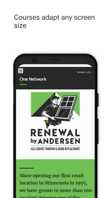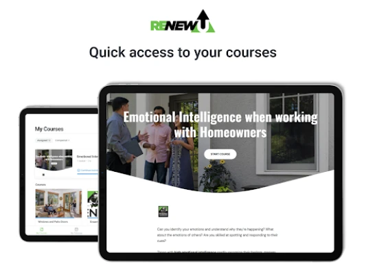 RenewU is the mobile application for Renewal by Andersen network. Access your training content on the go and take your learning with you anywhere, any time you want. Works with any mobile device. You can even download a course to complete offline.
