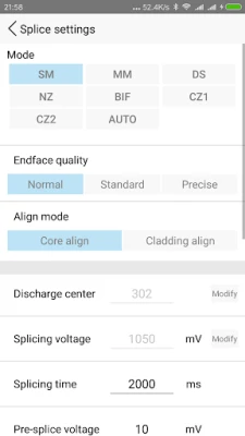 Features: This APP is connected to the splicing machine via Bluetooth. The data of the splicing machine can be transmitted to the mobile phone APP.