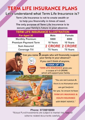 We focus mainly on Wealth Creation through Mutual Funds & Life protection through Insurance.