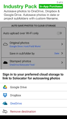 Autosave original and stamped photos to Google Drive, Dropbox, and OneDrive (Personal & For Business), including SharePoint Sites and Teams. You can also save photos in date or project name subfolders - automatically. Or select and export photos later.
