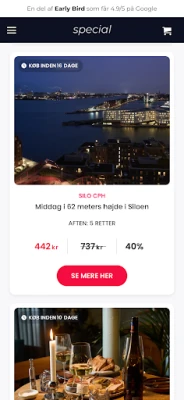 Special samler håndplukkede gastro-oplevelser. I appen køber du et værdibevis til en fast pris og bruger det, når det passer dig - typisk i op til 3 måneder. Vi udvælger få, men ekstraordinære oplevelser, så du hurtigt finder noget, du har lyst til.